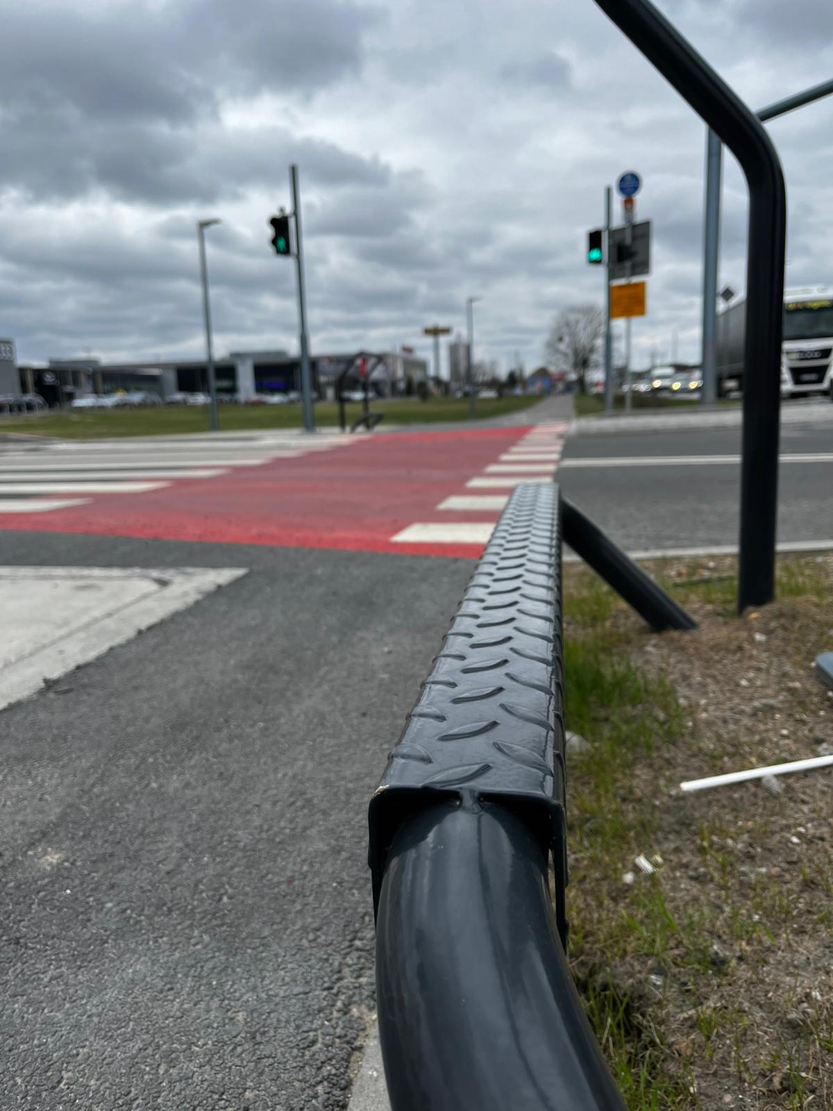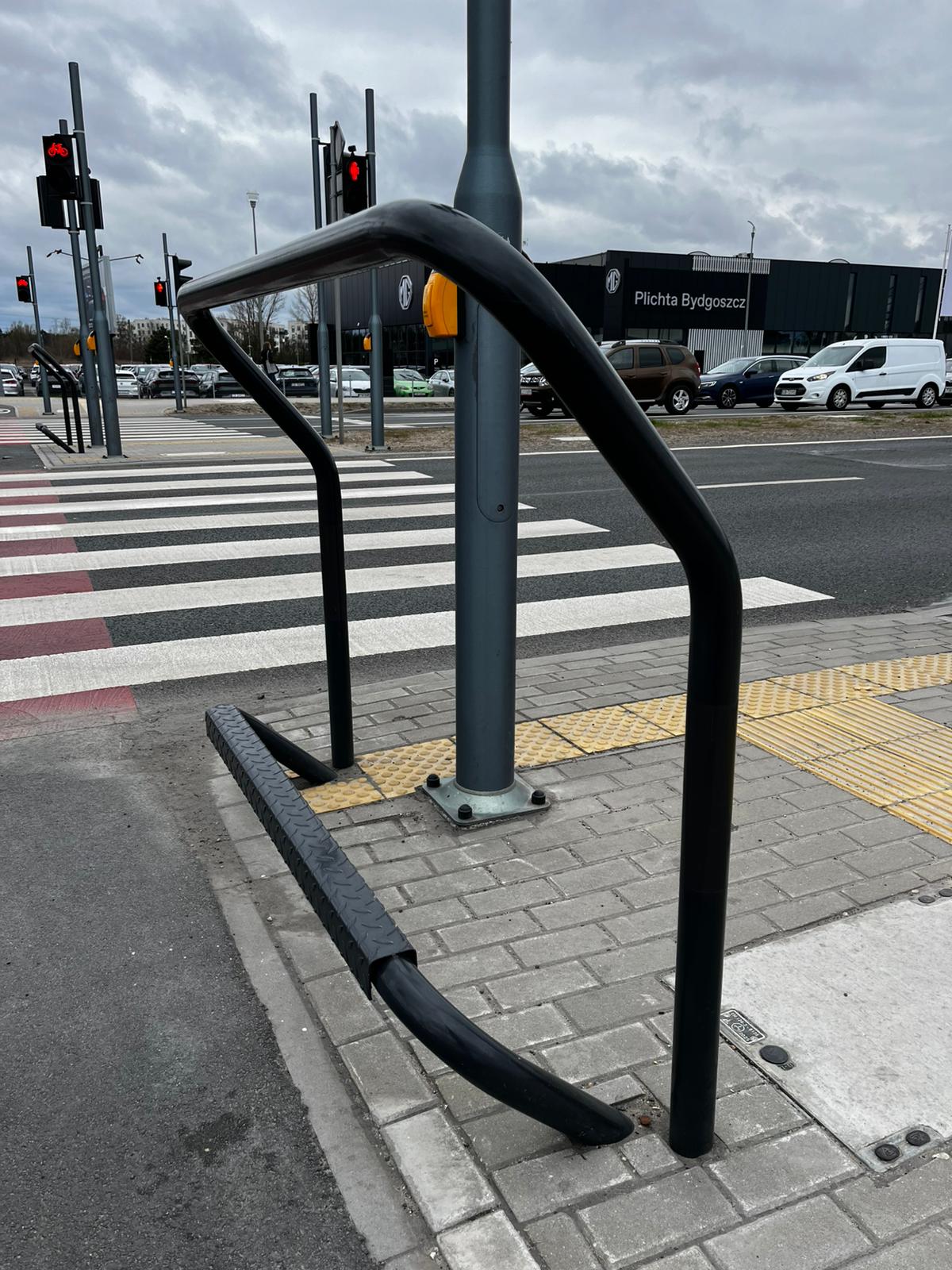 Podpórka dla rowerzystów Erplast to profesjonalne urządzenie infrastruktury rowerowej, montowane przy przejazdach przez drogi oraz na skrzyżowaniach z sygnalizacją świetlną. Umożliwia rowerzystom wygodne oczekiwanie na zmianę światła bez konieczności zsiadania z roweru, co znacząco podnosi komfort i płynność ruchu w aglomeracjach miejskich.